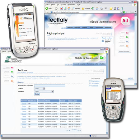 Nuestra tecnología permite incluso que el celular o una PDA (Palm o Pocket PC) puedan convertirse en efectivas herramientas de ventas.